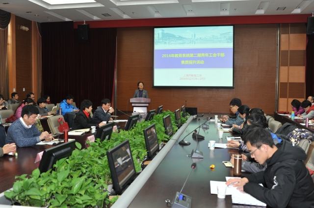 为进一步贯彻落实好中央群团工作会议精神,做好新形势下工会工作,加强本市教育系统工会干部队伍建设,提高青年工会干部的思想素质与业务能力,2016年11月24-25日,上海市教育系统第二期青年工会干部素质提升活动在我校举行,来自各高校、直属单位、区县教育工会及市教育工会机关共90余名青年工会干部参加了培训和拓展活动,培训由市教育工会副主席吉启华主持。