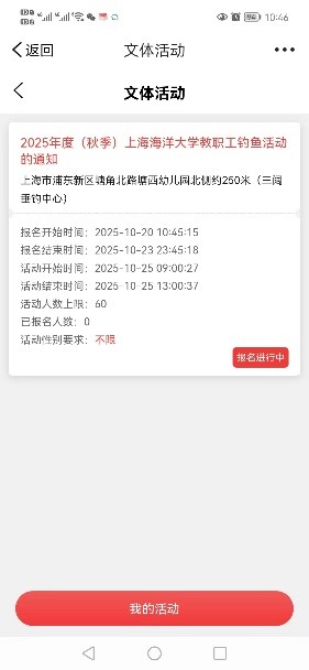 4.报名方式:通过手机端进入“i海洋”程序,搜索“智慧工会”平台,点击“文体活动”模块进行报名;